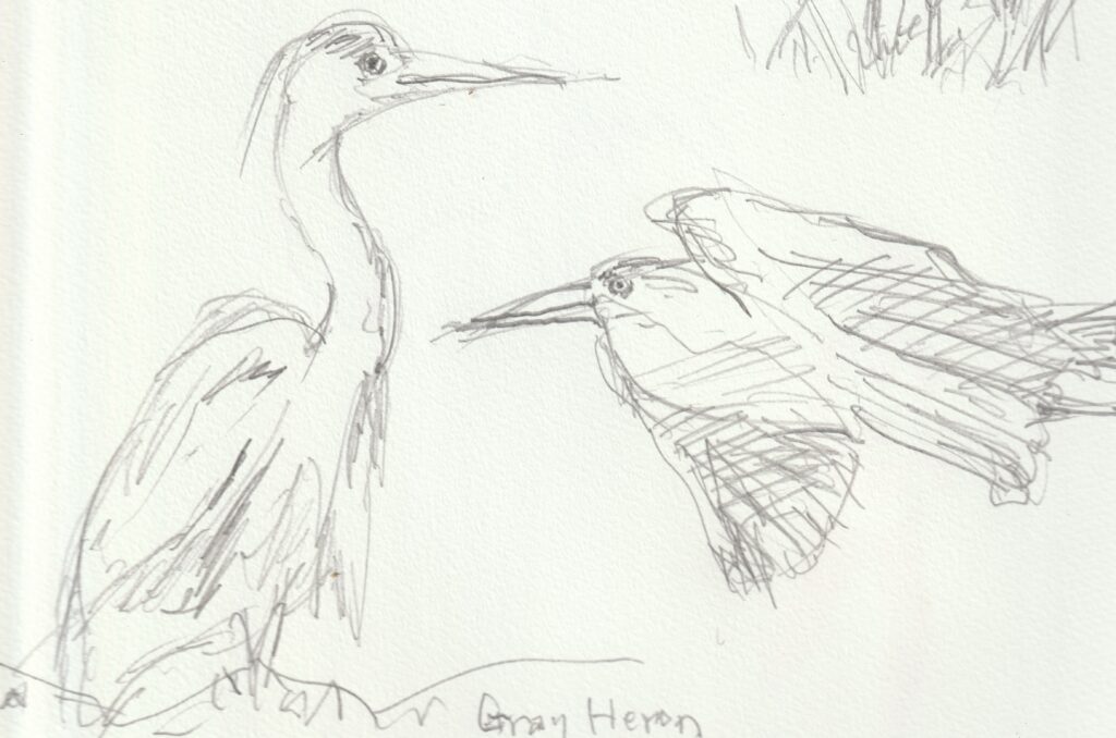 A humphy-backit heronNearly as big as meStands at the watersideFishin for his tea.